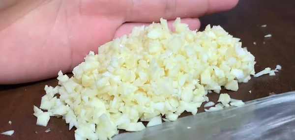 3、准备多一些大蒜子,把它切成薄片,再改刀剁成蒜末,剁得碎一点。