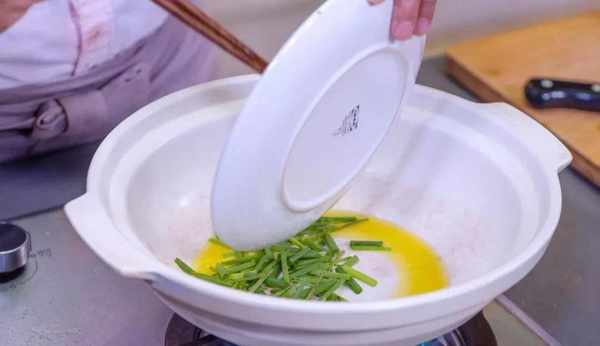 将砂锅烧热后倒入适量油,将葱、切好的辣椒放入砂锅中翻炒。