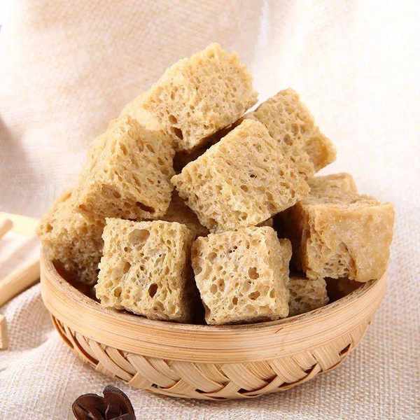 烤麸:颜色发黄,质地松软多孔