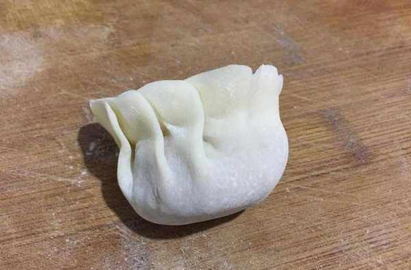 6、取一个饺子皮,将肉馅放入包起,包成自己喜欢的饺子形状即可。