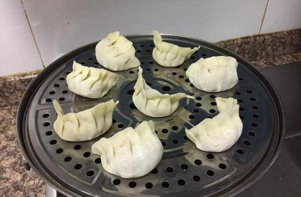 7、饺子依次全部包完后,锅内加入适量水烧开,放入饺子上锅蒸熟即可。