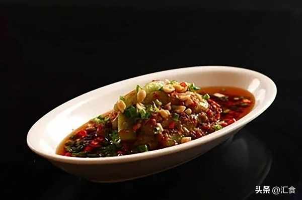 加入盐、鸡精、红油调味,放入适量的高汤烧开,浇在茄子上,撒入葱白碎和炒熟的花生碎,浇入热油即可。