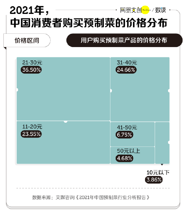 而除了健康问题之外,预制菜的价格等也成了消费者关注的焦点。有人指出部分餐馆吃相难看,自己付出了现炒的价格,结果吃到的却是廉价的加热流水线速食。实际上目前市场上的预制菜价格并不便宜,有数据显示,超七成的消费者会选择购买21元以上的预制菜,14%以上的人消费区间超40元。综合来看,预制菜的价格并不比现烹的菜品低,甚至更高。