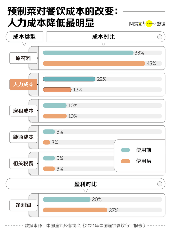 这样一来,对餐饮连锁而言,使用预制菜就可以解决人工成本高和租金高两大难题,这对企业经营来说,无疑是一个“完美”的选择。