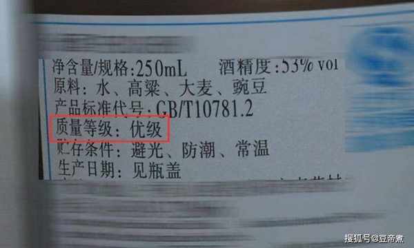 另外白酒瓶身的等级标识也需要注意,如果标注的是“特级”、“优级”或“一级”,那这个白酒的品质还是比较好的,如果标的是二级、三级或更低的等级,这个酒水的质量就一言难尽了。