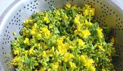 2、将洗干净的油菜花用盐水泡一至二个小时,这样可以去掉油菜花的涩味;