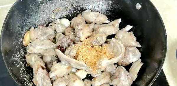 撒点料酒去腥增香,如果有白酒的话就用白酒。