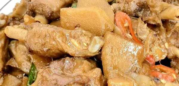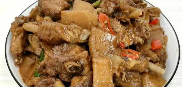 酸笋焖鸭是广东粤北一带的汉族风味名菜,属于粤菜系。酸笋的酸味和辣椒的辣味都完全渗入到鸭肉里面去了,闻起来是一阵香辣的味道,尝起来更是滋味无穷。吃过的人就知道有多美味了,让人念念不忘。绝对是一道十分开胃的菜肴。