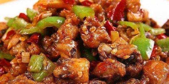第二道菜是辣子鸡,平常家里来客人的时候肯定少不了肉。首先我们需要准备:鸡腿、盐、酱油、糖、八角、花椒、干辣椒、葱、熟芝麻。我们要先把鸡腿切成一小块一小块的,然后放到一个盘子里。把干辣椒切成一段一段的,把葱切成葱花。起锅烧油,把切好的鸡腿肉放进去开始炸,一直到肉变成黄色为止然后捞出来。在锅中倒入油,把八角、花椒、葱、干辣椒爆炒入味,然后把鸡腿肉放进去炒一下,炒了大概几分钟我们在放入酱油、盐、糖开始炒,搅拌均匀以后我们在抓一把芝麻撒进去就可以出锅吃了。