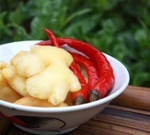 热锅冷油,加入少量胡椒粉炒香,然后加入干辣椒,姜,大蒜,腌姜,腌辣椒,然后炒至香。