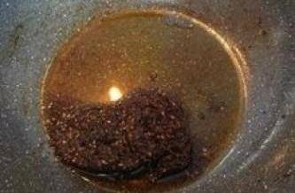 13倒入另外的一半200g油,让香料降温;