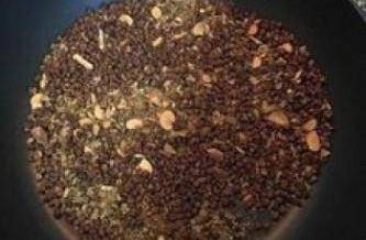 9干锅放花椒和五香卤包料略炒出香气;