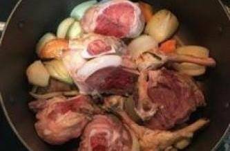 4放入猪大骨和鸡骨;