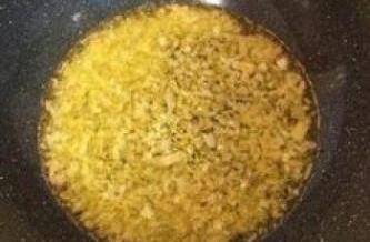 11炒锅下200g油,放洋葱炒香;接着放姜末和蒜末也ㄧ起炒香;