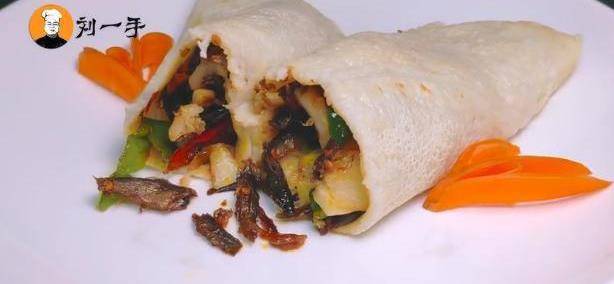8、最后在饼子中间放上刚炒好的柴火鱼,这时营养又不失美味的柴火鱼塌饼就做好了。