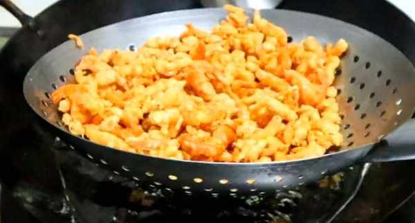 1、在炸的时候要把握好火候,虾的个头不大,就不要炸得太过了。看到它外皮变得焦脆后就可以起锅。