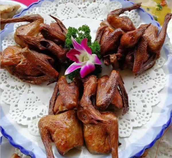 3、烤鸭,烤鸭肉比鸡肉更香,饭店在摆盘上还真是下了一番功夫了,漂亮的摆盘加上地道的美味,连我儿子看着都心动了,不爱吃的人还吃了两大块呢。