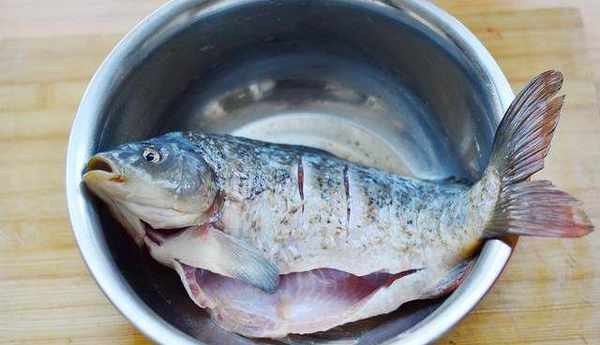 2:鲤鱼收拾干净后抽掉两面的腥筋。用刀倾斜45度角给鱼均匀的划斜开片。用料酒,盐腌制30分钟。
