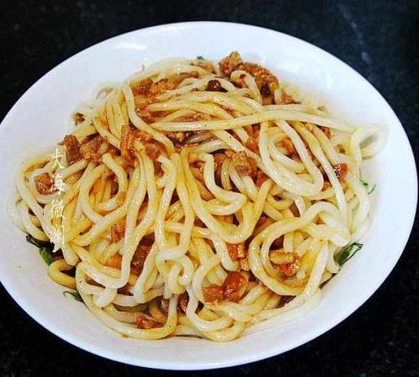 第8步、捞出面条,舀上两勺肉酱一拌,那叫一个香。