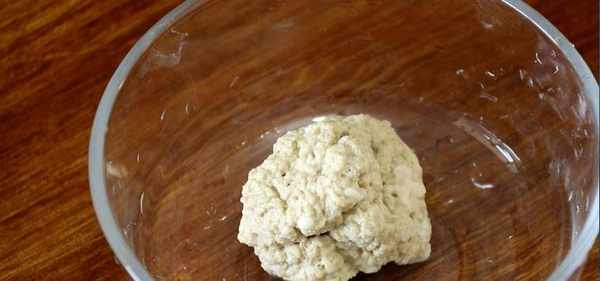 面团碗里加清水,用手搓、揉面团,洗出面筋。