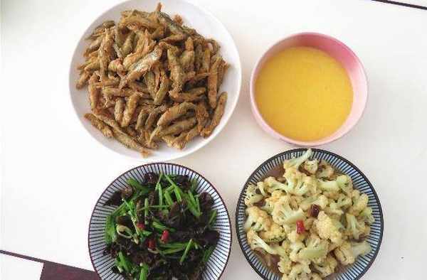 早上婆婆送来了些腌制好的小鱼,中午回到家用油炸至酥脆,小鱼可以从头嚼到尾,刺都不用吐。我又炒了芹菜木耳和菜花,煮了我们娘俩都喜欢喝的玉米粥,娘俩的午餐3菜1汤,只花了半小时。吃饭时,虽然没有大鱼大肉,女儿却吃得特别高兴,吃完直夸饭菜真香,特别适合她的胃口。来看看这些菜是如何做的吧,您喜欢也可以跟着做起来呢。