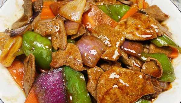 食材:猪肝、洋葱、青椒、胡萝卜