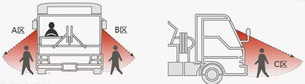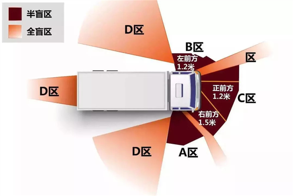 大貨車的車身通常很長,駕駛室的位置很高,發動機艙較大,囙此存在很多盲區。