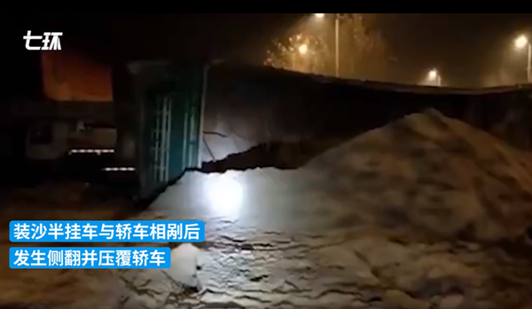 目擊者表示,當時運沙車側翻後,剛好壓住旁邊的小轎車,沙土散了一地,將小轎車緊緊埋住,駕駛室都變形了。目擊者還告訴記者,這一路段經常有大貨車通行,而且車速很快,十分危險。