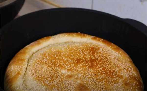 8.烙到另一面金黄了,咱们再翻个面,这张饼就烙好了,大概烙了有20分钟了。