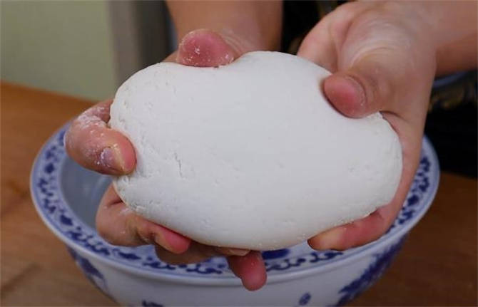 2.再来和一个死面的面团,250g的面粉,加上130g的温水来和面,同样的把这个死面面团也揉到光滑的程度。