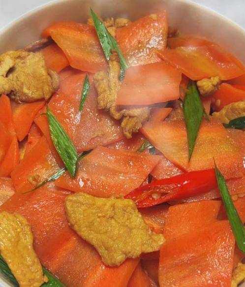 蒜苗胡萝卜炒肉片是一道菜色诱人的下饭菜,胡萝卜吃起来很清甜,搭配猪肉一起吃,肉质十分鲜嫩,一点都不柴,让你过足嘴瘾,超级下饭,太下饭了。