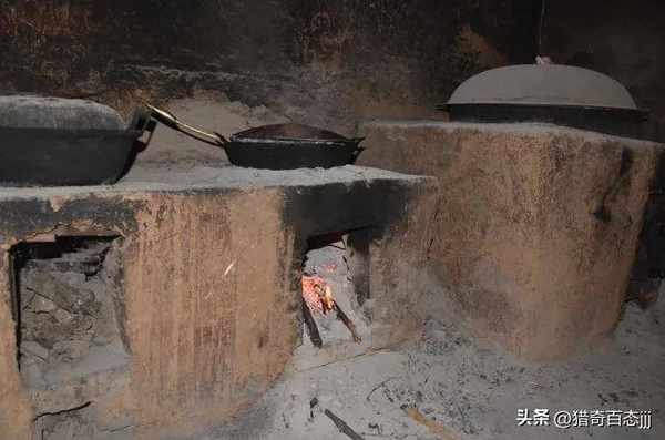 此时我才看清灶房内部的样子:一个硕大的灶台占了很大空间,一口大铁锅顶着一个大木盖镶嵌其中。灶房顶部烟雾缭绕,四周墙面被烟熏的乌黑一片。