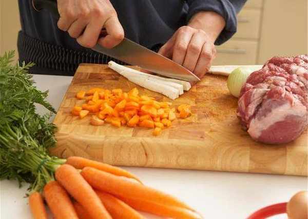 首先把从菜市场买回来的去皮羊羔肉排骨,用你家里祖传的菜刀改刀切成块块备用,配菜,准备土豆块一盆,青椒块一大碗,胡萝卜块一大碗,大葱段一大碗,洋葱块块一大碗!
