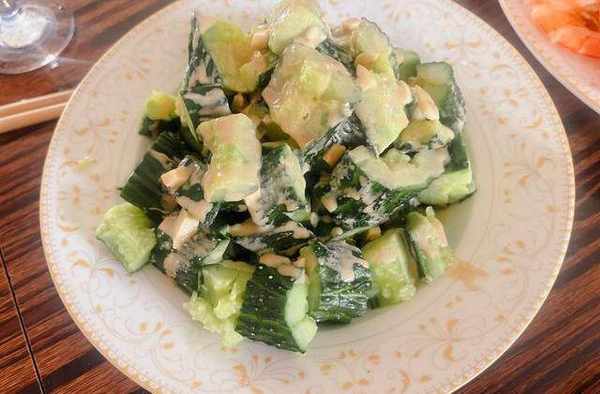 黄瓜寓意飞黄腾达,最省事的做法就是把黄瓜洗净后拍扁,用刀切段,然后加入芝麻酱、蒜末拌匀了就好了。吃起来清爽可口还不油腻。