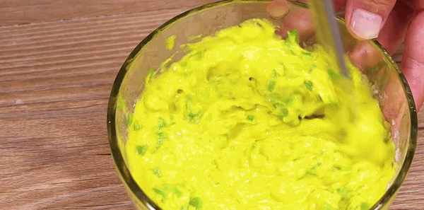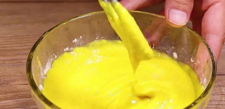 打好的泥倒入碗里,加入面粉,搅拌至面粉无颗粒状。