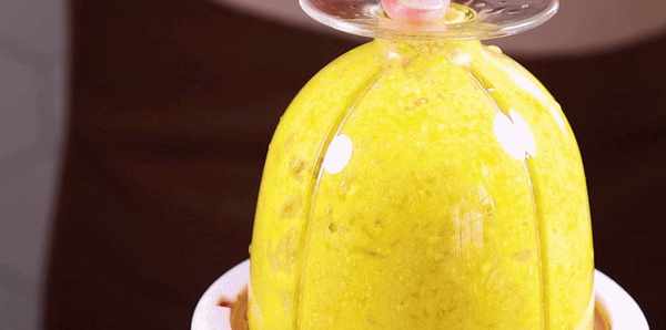南瓜肠取出,稍微放凉,倒扣脱模。