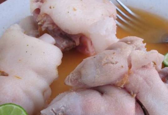 这是英国人自己做的猪蹄,看起来毫无食欲,英国人民的思想好像还停留在做西餐的思维上,他们做出来的猪蹄,就连他们自己都很太相信这个东西能好吃。