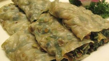 菠菜卷是一种晋南地区常见的家常小吃,以菠菜为主馅,小麦面粉擀薄做皮,皮上铺馅,卷起,入蒸锅,十五分钟即好。下锅,切段,蘸醋或蒜泥吃,新鲜美味营养。菠菜卷是选用新鲜菠菜为主料,用沸水焯熟摊凉后,放在蛋皮上卷成蛋卷,扎紧切件装盘,淋上芝麻酱汁即成。金黄色的蛋皮裹着翠绿的菠菜,淋上香浓芝麻酱汁后,不仅令人食欲大开,原来菠菜还能这样吃,真是太意外了,孩子每次吃撑了才罢休!
