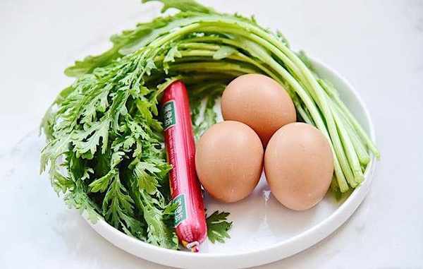 芹菜1把,火腿肠1根,鸡蛋3个,面粉适量