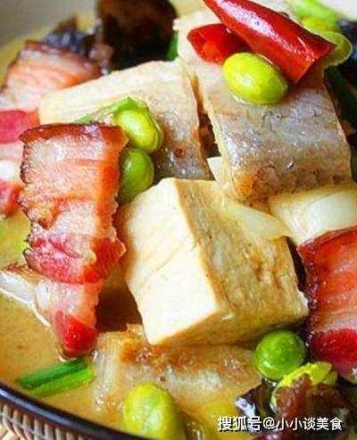 材料:腊肉1块,北豆腐1块,大葱2条,蚝油2汤匙,糖1茶匙,盐1/4茶匙,白胡椒粉1/2茶匙,生粉2汤匙