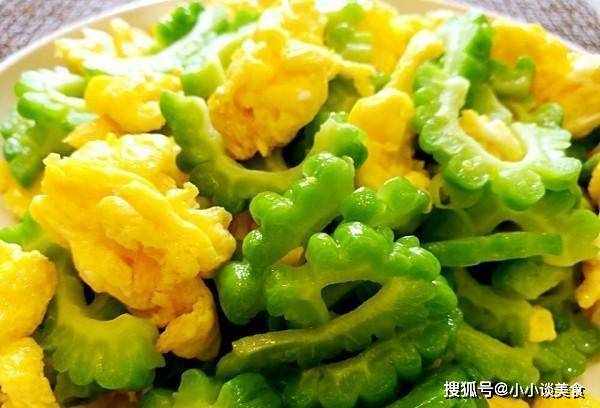 1.苦瓜洗净,切去头尾,然后对半切开。用不锈钢勺子,去掉软肉层的果肉和苦瓜的籽。用刀斜着切苦瓜。把苦瓜片放在一个大碗里,撒上少许盐。腌约。10分钟,倒掉溢出的瓜水,苦瓜片用水冲洗去盐分,沥干待用;鸡蛋打散,加2-3勺淀粉水,几滴料酒拌匀;锅内放油烧热,倒入蛋液后,用筷子快速搅拌成蛋块,将鸡蛋煎熟;