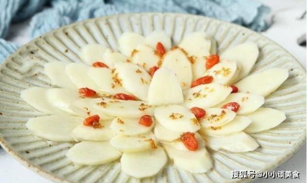 4.将山药摆成花朵状摆盘;