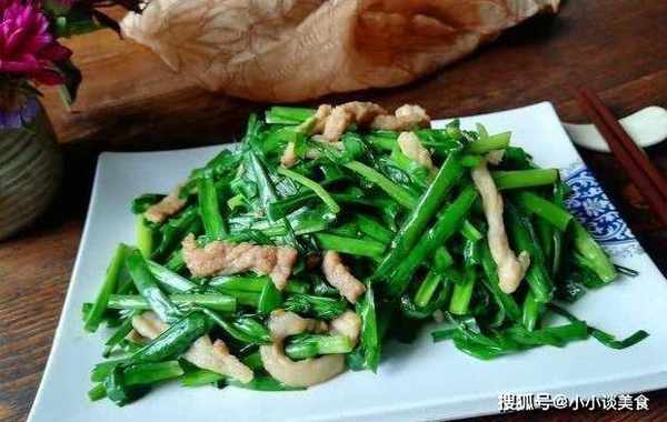 3.锅中油烧热,加入肉碎炒至颜色变白,淋上1汤匙生抽,将肉碎炒出颜色。4、放入韭菜茎炒至光滑,放入韭菜叶,用盐快速炒至韭菜叶稍软,关火,取出装盘。