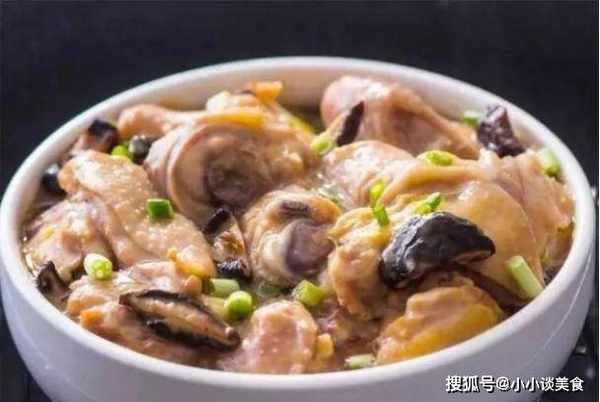 材料:鸡半只、香菇、枸杞、姜丝、葱花、生粉、黄酒、蚝油、酱油、白胡椒粉、香油