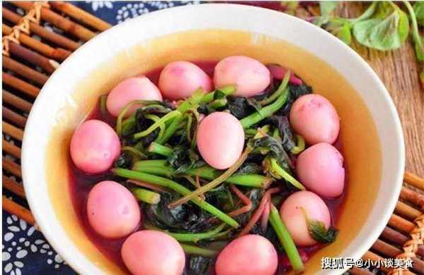 材料苋菜180克,鹌鹑蛋150克,葱适量,姜适量,蒜适量,花椒适量,盐适量,花椒粉适量,香油适量