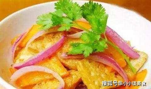 做法:1、洋葱去皮切片,北豆腐切片,胡萝卜去皮切成菱形块备用。