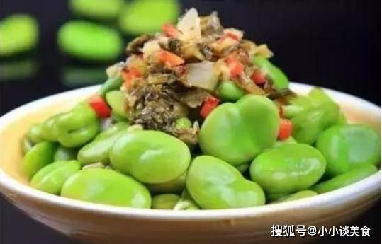 原料:蚕豆250克、酸菜150克、油、盐、姜、葱