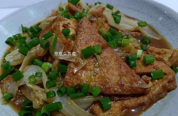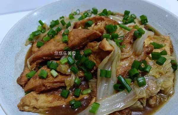 最后撒入准备好的葱花,一道鲜香美味的白菜焖豆腐就这样完成了。豆腐的表面焦脆里面软美好吃,白菜脆口多汁,而且还有淡淡的甜味,将它们放在米饭中搅拌一下,气质绝了,一不小又多吃一碗饭。