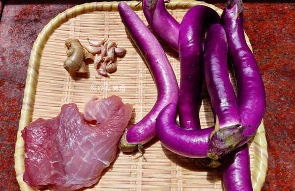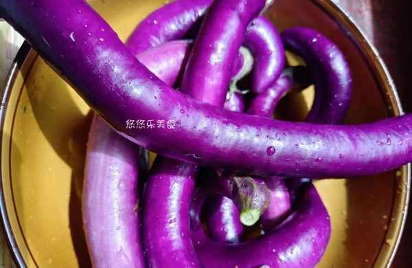 1.将准备好的茄子放在盆中,加入适量的水,用清水将茄子清洗干净。洗净后的茄子放在案板上,用刀切断茄子的头尾部分;