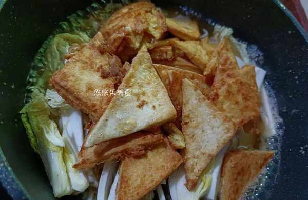 9.锅中的食材焖煮好后,白菜跟豆腐吸足了酱汁,气质更鲜美了,随后关火出锅。